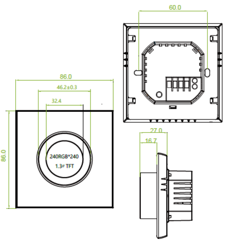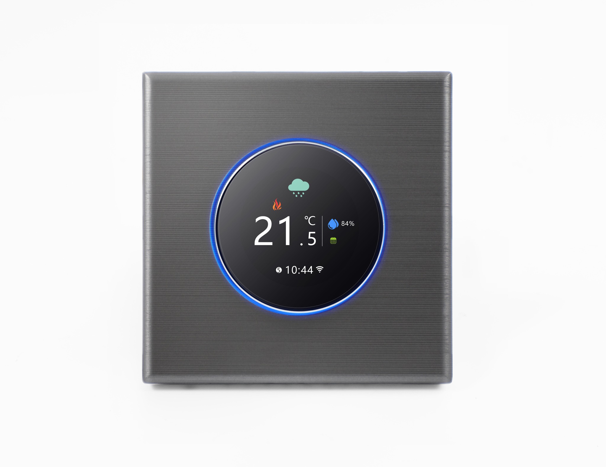 Терморегулятор выполнен в красивом серебристом корпусе, оснащен интеллектуальной кнопкой с ЖК-дисплеем и многоуровневой подсветкой. Устанавливается в стандартный круглый подрозетник. Можно заменить старый терморегулятор, просто отсоединив и сняв его не меняя установленного датчика теплого пола и подключить новый.