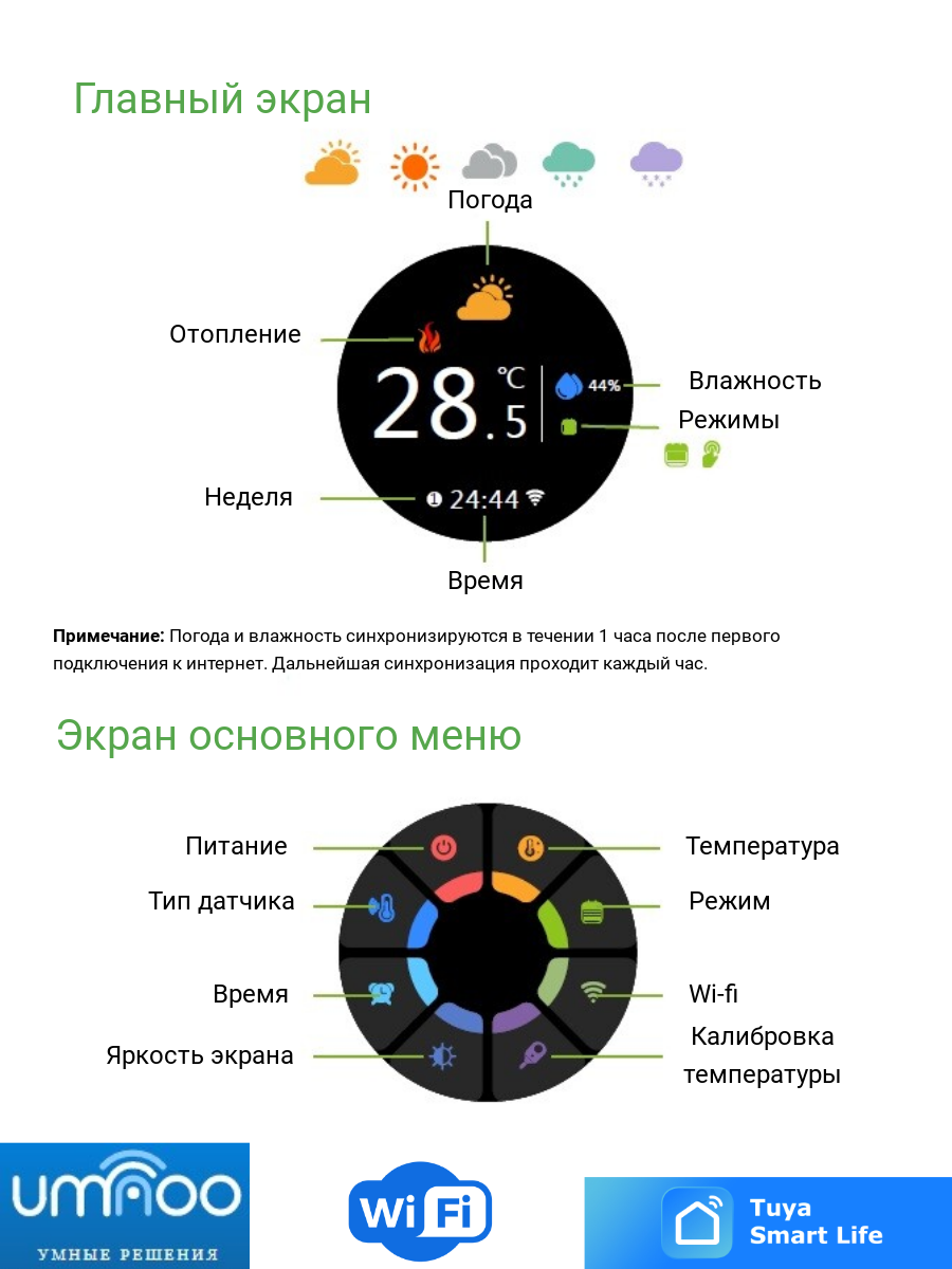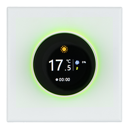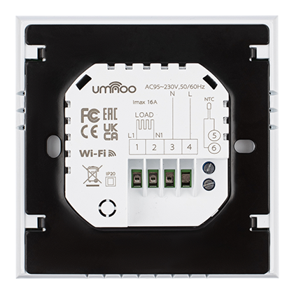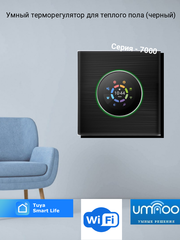 Умный терморегулятор (термостат) Umnoo для теплого электрического пола с круглой интеллектуальной кнопкой и модулем wifi, предназначен для ручного, дистанционного управления теплым полом. Можно дистанционно изменять температуру пола и устанавливать включение, выключение пола по расписанию, в будние и выходные дни по времени.